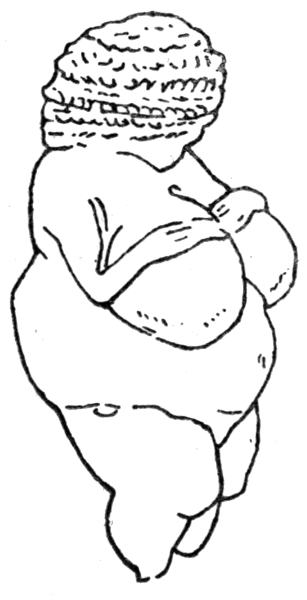 THE works of art produced by the cave-men are, as we have already seen, of five kinds or classes—(1) All-round small statuettes, or "high-relief" carvings, in ivory, bone, or stone (examples of which are shown in Figs. 14, 25, 26, 27, 28 of the present chapter); (2) small engravings on bits of ivory, deer's antler, bone, or stone (examples are shown in Figs. 15, 16, 20, and 24); (3) large statues, hewn in rock, and left in place; (4) drawings of large size—two to five feet in diameter (partly engraved and partly coloured) on the rocky walls and vaults of limestone caverns (shown in Figs. 11, 12, 13, 17, 18, 19, 23, as well as in the figures of mammoths in the last chapter); (5) models (high relief) worked in clay. I give reproductions in the present chapter of several samples of this art, showing how skilfully these men of 50,000 years ago could portray a variety of animals.