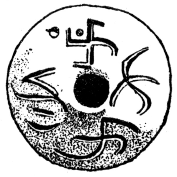 Apart from this problem, there is an interesting question as to how the device probably took its origin. The "Swastika" is sometimes called the "gammadion," because it may be regarded as four individuals of the Greek letter gamma (which has this shape [Greek: G]) joined at right angles to one another. The old English name for it, dating from Anglo-Saxon times, was fylfot—an old Norse word of doubtful meaning, which has no currency at the present day.