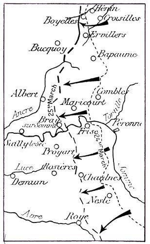 Driven from the banks of the Somme by the Franco-British Offensive of 1916, the Germans were compelled, in March 1917, to retreat, before the menace of the Allied offensives on their flank.