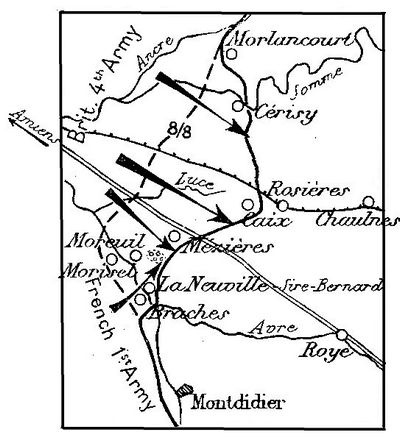 Besides this numerical and material superiority, Germany possessed [Pg 7] the additional advantage of a unique commander: Ludendorff, master of the hour, at once absolute military chief and political dictator. On the other hand, whilst the Allies were closely united by cordial friendship, sealed on the field of battle, their armies were independant units, separately commanded, each having its own reserves concentrated behind its particular front.