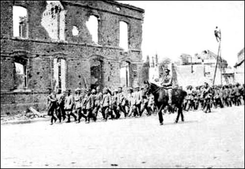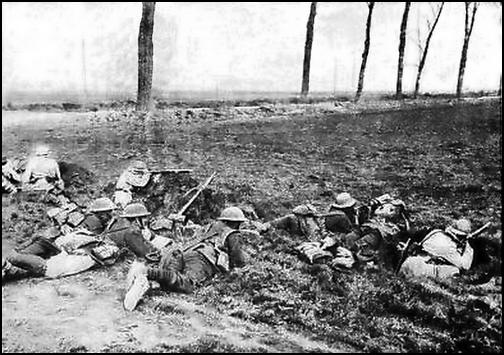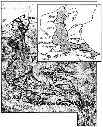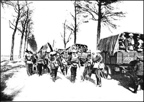 But in the early days of 1918, having crushed Russia, Germany decided to assume the offensive, using the Hindenburg positions as a kind of spring-board, from which her mighty armies rushed forward to conquer France.
