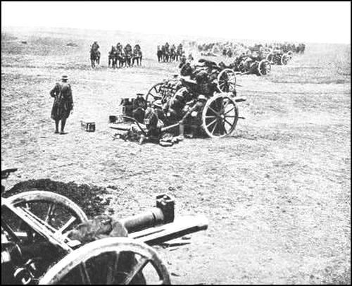 The material resources, accumulated on the Russian front, were likewise transferred to the western front. The enemy's artillery was reinforced all along the line, the number of heavy batteries being doubled in many of the sectors.