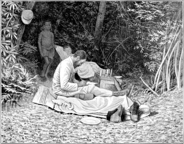 Als gute Vorbedeutung für das Leben in der Wildnis nahm ich die Heimatswünsche, die am Morgen kurz vor dem Abmarsche uns die Post aus Deutschland gebracht hatte, an sich schon ein Ereignis, dessen Bedeutung jeder „Afrikaner“ zu würdigen weiß; für mich war es aber noch von besonderer Wichtigkeit; mein in Hamburg liegengebliebener Koffer mit all meinen Kleidern und aller Wäsche, Schuhen usw. war gleichzeitig angekommen, so daß ich meine gewohnte deutsche Garderobe noch mitnehmen konnte. Die sechzehn neuen, in indischen Läden von Männern fabrizierten Kleider sind mir doch nicht so bequem wie die in der Heimat gewohnten.