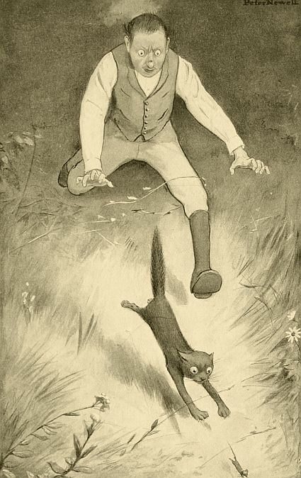 Now and then I heard a sob from the grass, where the Mouse was running in deathly fear, and deep, harsh breathings from Tom-Tom, who was now gaining his second wind and plunging ever closer to his hapless victim. A little ahead was the railroad track, which much surprised me. I had been so interested that I had kept no account of the distance and it came to me with something of a shock that we had run over ten miles.