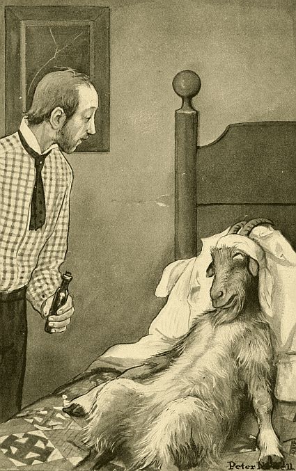 How well I remember the day when Tom-Tom came in suddenly, and saw Upsidaisi sitting on the edge of my plate, helping himself daintily to fried bacon with a straw from the broom neatly slit at one end! There was a low growl from the Cat and a snort of terror from Upsidaisi as he ran down my neck for safety. I wore larger collars in those days, that the panics of my little friend might not cause a stricture in my œsophagus.