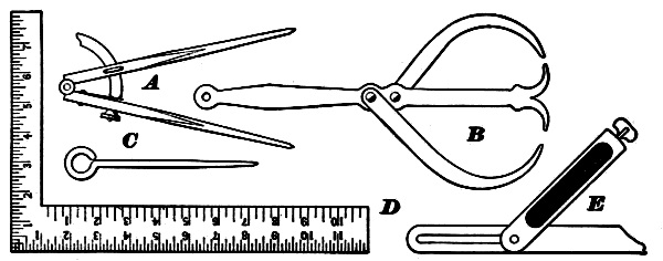A, poker; B, rake; C, shovel; D, dipper; E, sprinkler.