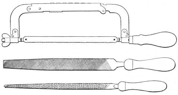13. The pick-up tongs (C, Fig. 8) are useful for picking up large or small pieces, as the points of the jaws are fitted closely together, and the two circular openings back of the point will securely grip larger pieces when seized from the side.