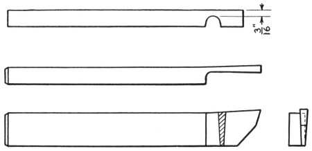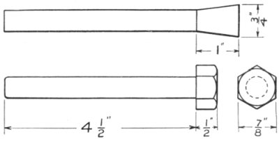 Chapter V. Tool Making and Stock Calculation.—91. Tongs; 92. Heavy Flat Tongs; 93. Light Chain Tongs; 94. Lathe Tools; 95. Brass Tool; 96. Cutting-off or Parting Tool; 97. Heavy Boring Tool; 98. Light Boring or Threading Tool; 99. Diamond Point Tool; 100. Right Side Tool; 101. Forging Tools; 102. Cold Chisel; 103. Hot Cutter; 104. Cold Cutter; 105. Square-edged Set; 106. Hardy; 107. Flatter; 108. Small Crowbar; 109. Eye or Ring Bolts; 110. Calipers; 111. Stock Calculation for Bending |