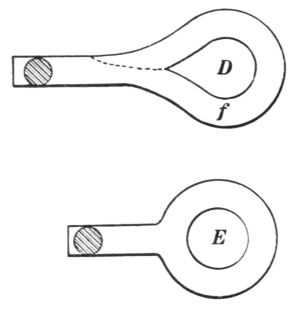 14. The side tongs (D, Fig. 8) are used for holding flat iron from the side. Tongs for holding round iron from the side can be made in this form with circular jaws.
