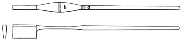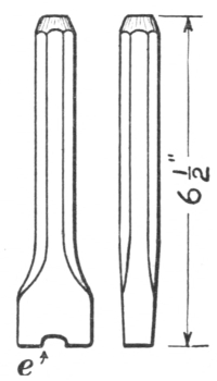 8. The straight peen hammer (C, Fig. 6) is shaped similarly to the ball peen hammer, except that the peen is flattened straight with the eye. It is convenient for drawing metal lengthwise rapidly.