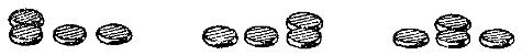 Four cards are then dealt off from left to right, face up, for the layout. Holding the remaining thirty-four cards in the left hand, face down, the player counts off three at a time and turns them face up on the table, but so that the top card only[694] is seen. If this card can be used, the card under it is available. If not, the three are left on the table and three more turned up in the same way.
