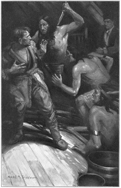 | Trappers Attacked by Indians From an old print by A. Tait |