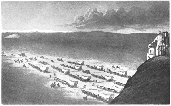 Of the travellers who marched westward over the arid plains, during the period which intervened between the return of Lewis and Clark and the establishment of the old California trail, and of the earlier northmen who trafficked for the beaver in Canada, a few left records of their journeys; and of these records many are most interesting reading, for they are simple, faithful narratives of the every-day life of travellers through unknown regions. To Americans they are of especial interest, for they tell of a time when one-half of the continent which now teems with population had no inhabitants. The acres which now contribute freely of food that supplies the world; the mountains which now echo to the rattle of machinery, and the shot of the blasts which lay bare millions worth of precious metal; the waters which are churned by propeller blades, transporting all the varied products of the land to their markets;9 the forests, which, alas! in too many sections, no longer rustle to the breeze, but have been swept away to make room for farms and town sites—all these were then undisturbed and natural, as they had been for a thousand years. Of the travellers who passed over the vast stretches of prairie or mountain or woodland, many saw the possibilities of this vast land, and prophesied as to what might be wrought here, when, in the dim and distant future, which none could yet foresee, settlements should have pushed out from the east and occupied the land. Other travellers declared that these barren wastes would ever prove a barrier to westward settlement.