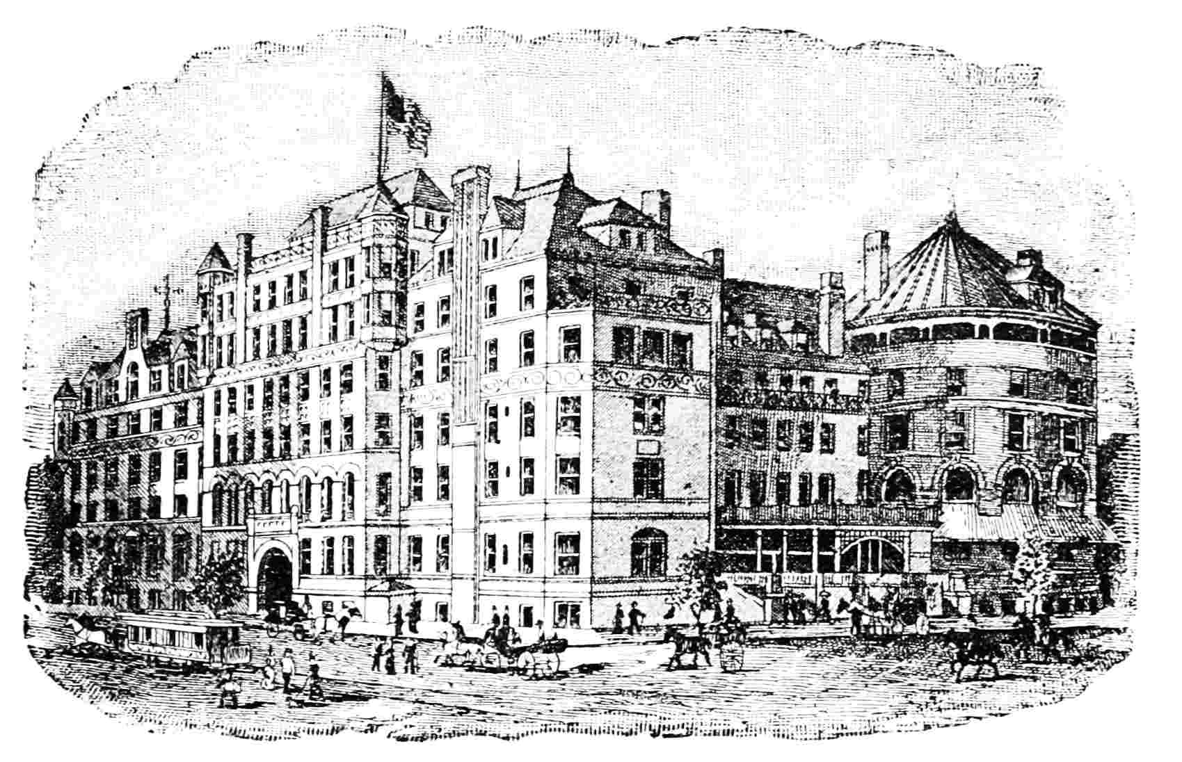 The most massive hotel structure in the world, built entirely of stone and iron, ten stones high, absolutely fire-proof. Overlooking Lake Michigan, situated within four blocks of the business centre of the city. American and European plans.