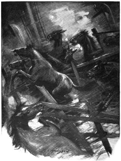 On the morning of September 17th came a change in the direction of the wind. The officers consulted the barometer, and the land-lubbers, taking amateurist observations of their own, saw that it was falling. Then came a few gusts, the sky changed, and in a little while a terrific storm burst over the steamer. The vessel rolled, and the horses, unused to such a motion, had difficulty in retaining their feet. Clouds of spray dashed over the bridge and tons of water broke upon the decks. The stalls were flooded and became slippery, and the animals frequently fell. Sometimes a lurch threw at least fifty from their feet. Instantly there was a struggling, kicking mass of horse and mule flesh on the decks. The cowboys, although experiencing the first real nausea during the voyage, bravely went among the helpless brutes and assisted them to their feet. For two days and nights this went on, and few men were able to sleep. Finally things got so bad that Captain O’Neil sent a written request to Captain Raicich to change the course of the vessel to any direction that would give the least motion to the ship.