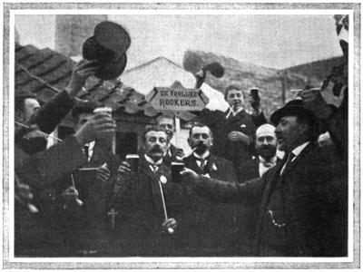 THE AIRSHIP LEAVING THE GROUND AMID THE CHEERS OF THE EXCITED ONLOOKERS.