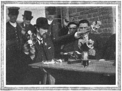 It might be supposed that it would be pretty hard to get together a score of persons who would be willing to risk their lives in such an unpractical affair as the Morrell airship; but, strangely enough, the greatest difficulty was experienced in keeping people off the craft. One man, a well-known aeronaut named Captain Penfold, repeatedly begged Morrell to let him make the ascent, but his request was flatly refused. Yet so eager was Penfold that at the last minute he smuggled himself on to the craft and went up with it and—a few moments later—came down with it.