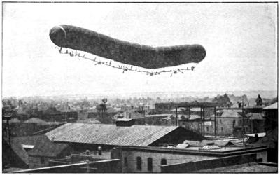 Some time last year there came from the windy city of Chicago to the hardly less breezy San Francisco a man named John A. Morrell, who built a small airship with a balloon of insufficient size to lift the engines and netting. The craft got loose before the crew of twelve had taken their places and rose from a hundred to two hundred feet in the air, floating away in a southerly direction down the San Francisco peninsula and coming to rest at Burlingame, in San Mateo County, twenty miles from its starting-point.