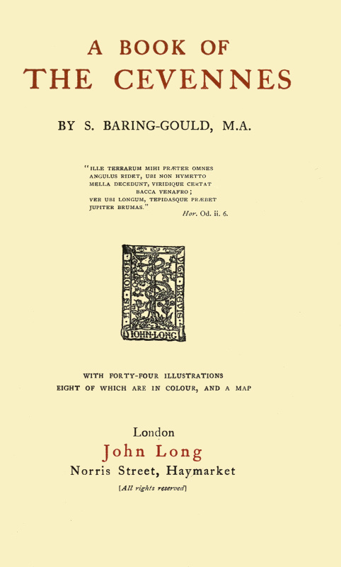 The Project Gutenberg EBook of A Book of The Cevennes, by S. Baring-Gould This eBook is for the use of anyone anywhere at no cost and with almost no restrictions whatsoever. You may copy it, give it away or re-use it under the terms of the Project Gutenberg License included with this eBook or online at www.gutenberg.org/license Title: A Book of The Cevennes Author: S. Baring-Gould Release Date: January 11, 2017 [EBook #53945] Language: English Character set encoding: UTF-8 *** START OF THIS PROJECT GUTENBERG EBOOK A BOOK OF THE CEVENNES *** Produced by David Edwards, Christian Boissonnas and the Online Distributed Proofreading Team at http://www.pgdp.net (This file was produced from images generously made available by The Internet Archive)