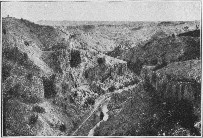 “Hell’s Ten Thousand Acres,” from Scenic south are equal in some ways to the Grand Canyon of Colorado in their ruggedness. “Hell’s Sunken Gardens,” south also, surpasses in beauty and magnitude anything of its kind in the world.