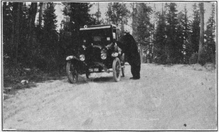 No one going through Interior should miss him. He tells some very interesting tales of early days in the West. Recently a motion picture company used him in the role of the Patriarch Moses in the mountains. He gives us a rehearsal 28 of the role he played and recounts the garb of animal skins he wore, and other interesting features of the adventure. We listen with open mouths, and find it difficult to tear ourselves away for the continuance of our journey.