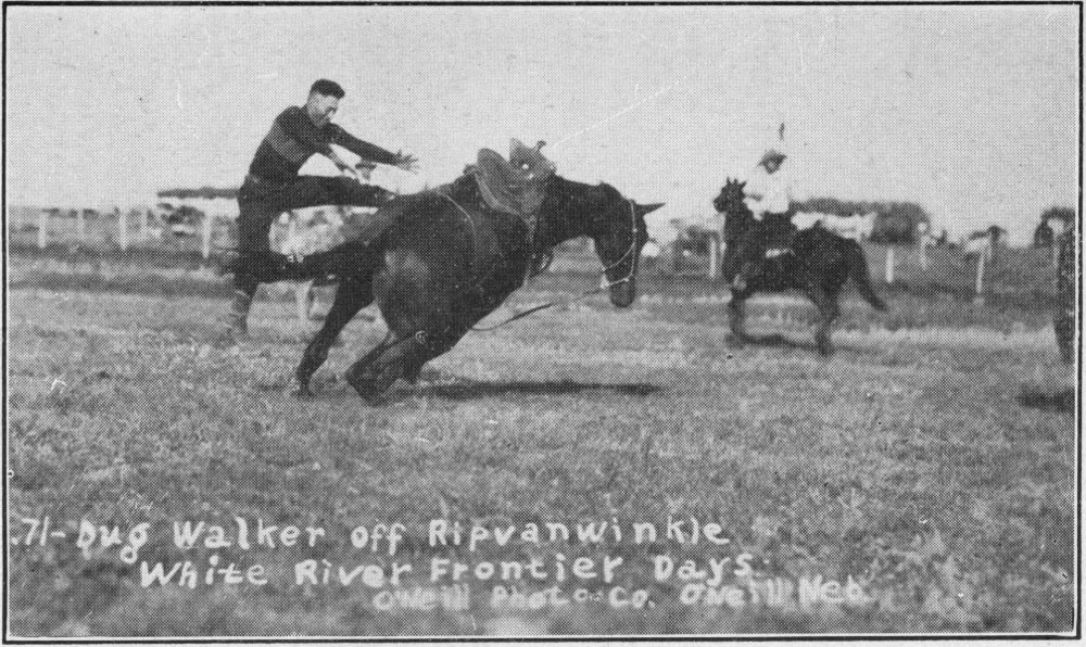 Wounded Knee Battlefield, the last stand of the Sioux, is also south of Scenic. Here hundreds of Indians, men, women and children, were massacred by the soldiers when they stubbornly resisted the coming of law and government to take from them their hunting grounds. These Indians were all buried in one long grave, marked now with a tall marble slab on which are chiseled the odd names of the Indian dead.