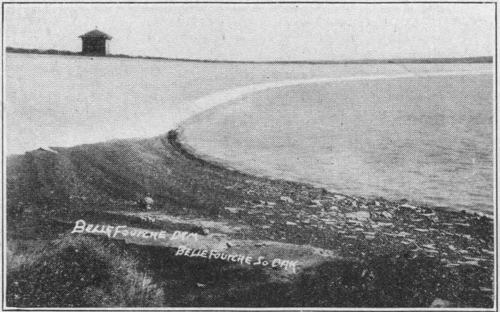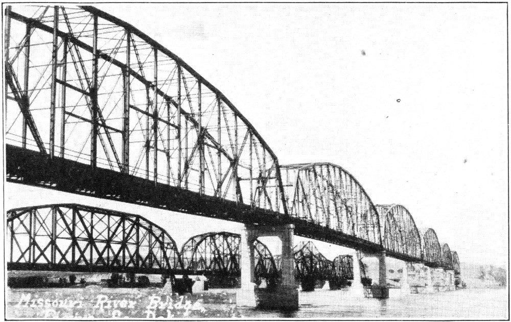 From this floor a spiral stairway leads up, up, up, to the room above the inner dome. From the dome room one can see the mighty turbulent waters of the Missouri bubble and boil on their way. The great bridge is in full view, with the railway bridge beyond. The scenes from the “Capitol dome” are remarkable. A trip to Pierre would be incomplete without this part.