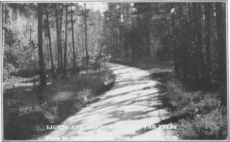 The main purpose of this book is to give a chronological or itinerary account of what may be seen in the Black Hills. It should acquaint the tourist with the things of interest to see on his trip. It should save him the chagrin of passing a point of interest without having known he did so. It should, further, give him a souvenir of the scenes and experiences of the trip. But one of the central purposes of this treatise is to give the school children and the grown-ups of South Dakota a picture of their own Black Hills and Bad Lands.