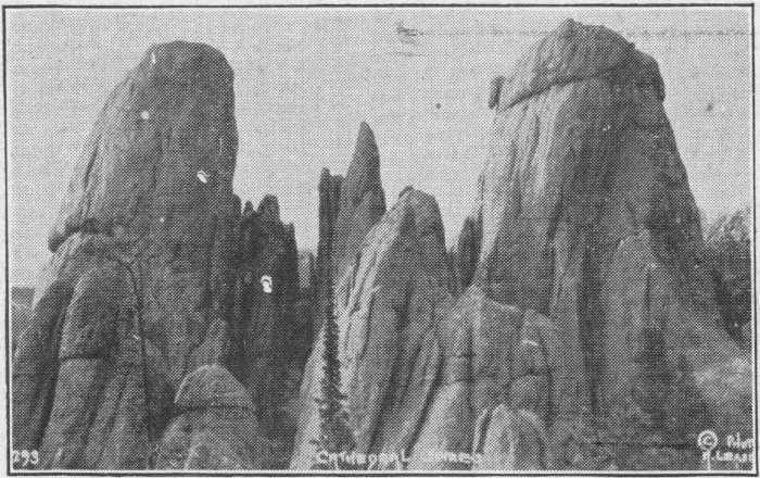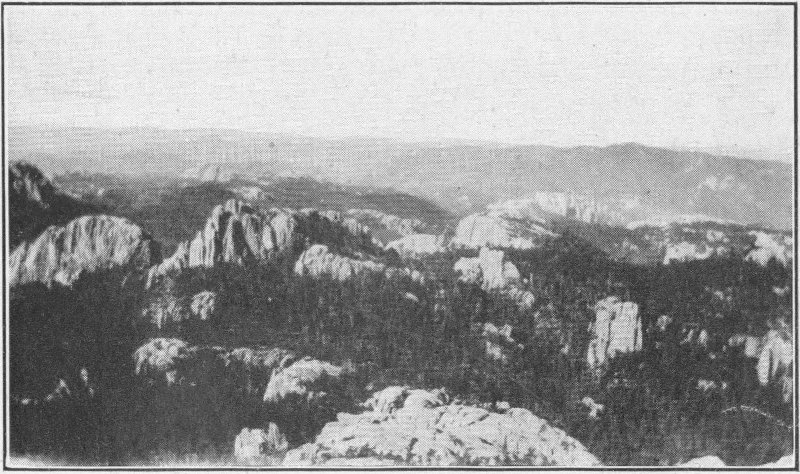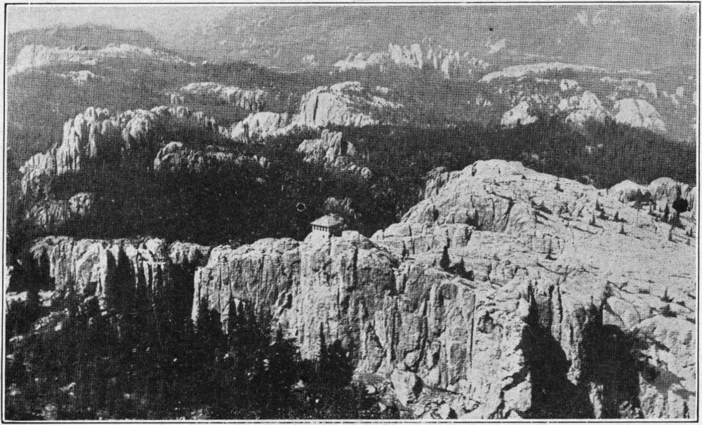 From Scenic to Rapid City is about forty-five miles. After leaving Scenic the silhouetted black mountains, soon come into view. They are visible in their magnificent grandeur, fifty miles distant, growing more distinct as they are approached. Upon nearing them, if one is familiar with the various peaks, he can pick each out and call it by name.