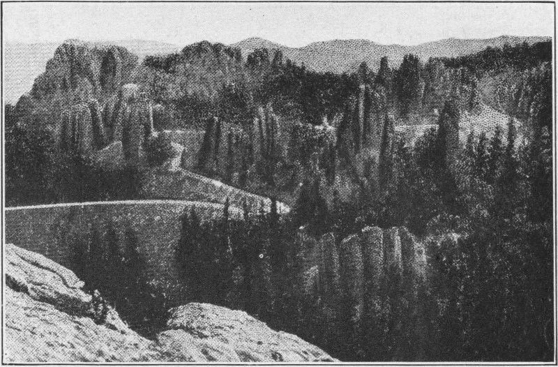 “The Wonderland of America” is not an overstatement of the scenic beauty of the Black Hills of South Dakota. One cannot but marvel at the endless new experiences that he has each day, whether it be on a three days’ or a three weeks’ trip through the Black Hills. In the shorter trip he will take in the more prominent points, scarcely departing from the main arterial highways. On the longer tour he will drive a thousand to fifteen hundred miles through deep canyons, up to the mines, and to many other places which at first would seem almost impenetrable but which upon inquiry will be found readily accessible. The more extensive trip should be the one selected if at all possible, for it leaves an impression on a person’s mind that cannot be erased by time or by any amount of traveling in any part of the world.