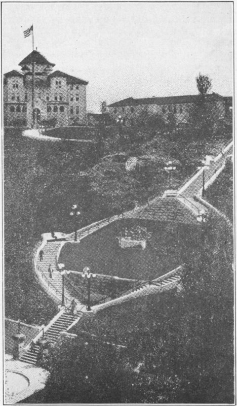 The Capitol, “up on the hill,” is probably the first building of Pierre to catch the eye when entering the city from any direction. Its great wings and massive dome cause it to stand out, and its height adds to its conspicuousness.