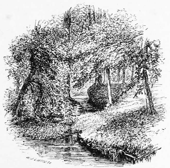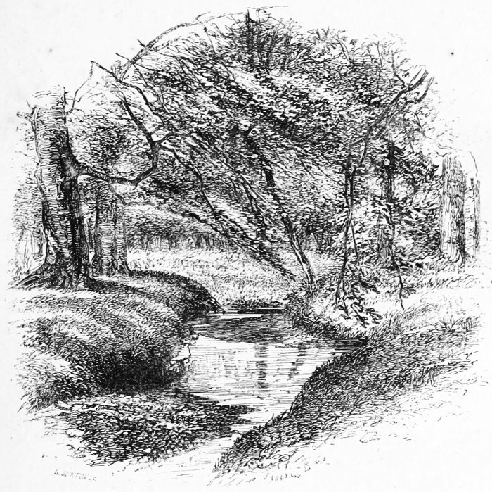 These may all be gone, but plenty of beauty is still left. The Avon still flows on with its floating gardens of flowers—lilies and arrowhead, and the loosestrife waving its crimson plumes among the green reeds. The Forest streams, too, still flow on the same, losing themselves in the woods, eddying round and round in the deep, dark, prison-pools of their own making, and then escaping over shallows and ledges of rolled pebbles, left dry in the summer, and on which the sunlight rests, and 15 the shadows of the beeches play, but in the winter chafed by the torrent.