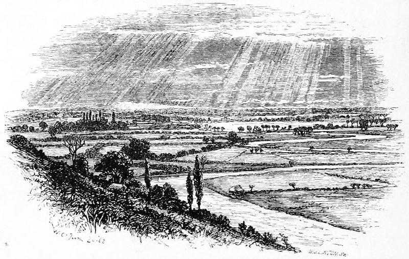 Across its broad expanse of moors the sun still sets the same in summer time—into some deep bank of clouds in the west, and as it plunges down, flashes of light run along their edges, and each thin band of vapour becomes a bar of fire, and the far-away Purbeck hills gleam with purple and amethyst.