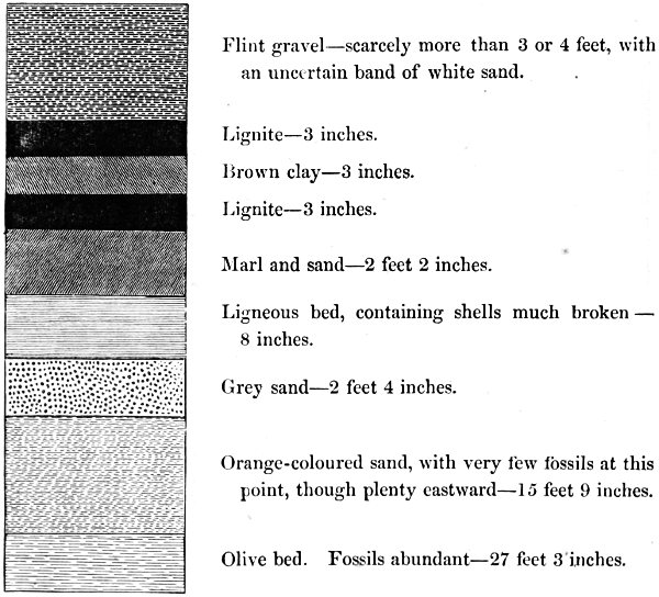 Taking, however, a more special view, and looking at the district itself, we must remember that it is situated on the Middle-Eocene, and presents some of the best features of the Tertiary formation. Its hills may not be high, but they nowhere sink into tameness, whilst round Fordingbridge, and Goreley, and Godshill, they resemble, in degree, with their treeless, rounded forms, shaggy with heath and the rough sedge 11 of the fern, parts of the half-mountainous scenery near the Fifeshire Lomonds.[4]