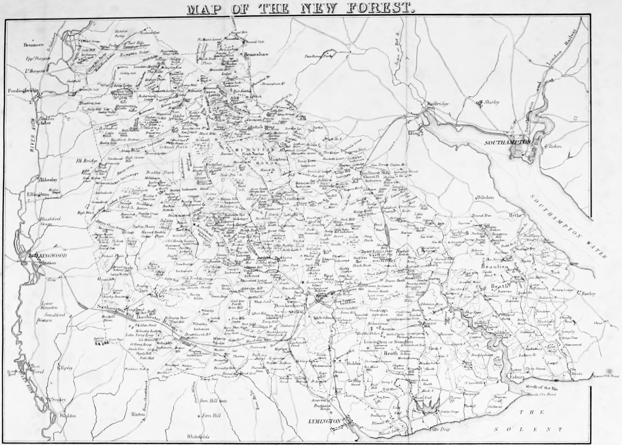 Under the title of the New Forest I have thought it best to include the whole district lying between the Southampton Water and the Avon, which, in the beginning of Edward I.’s reign, formed its boundaries. To have restricted myself to its present limits would have deprived the reader of all the scenery along the coast, and that contrast which a Forest requires to bring out all its beauties.