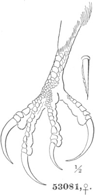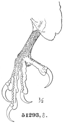 Adult male (No. 13,908, Chile; Lieutenant Gilliss). Resembling the immature of var. harrisi, as described on p. 1569 (No. 56,763). Primaries edged terminally with whitish; inner webs of tail-feathers mottled whitish for their basal half, not showing the regular transverse bars seen in the immature of var. harrisi; under surface of primaries almost wholly white, becoming ashy, barred with dusky, towards their ends. Wing, 12.00; tail, 8.30; tarsus, 2.90; middle toe, 1.60. Adult female (No. 13,907, Chile; Lieutenant Gilliss). Similar to No. 13,908, but the tibiæ more strongly barred. Wing, 12.50; tail, 8.30.