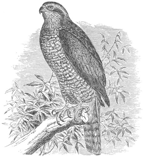 83 Astur palumbarius, var. palumbarius (Linn.). Falco palumbarius, Linn. S. N. 1766, 130. Astur p., Cuv. Règ. An. (ed. 1), I, 320; et Auct. Hab. Europe and Asia.