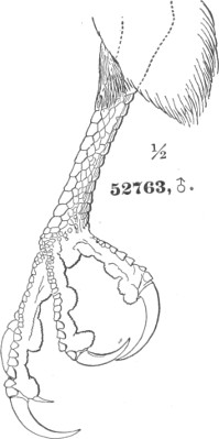 The presumed differences between the two species may be briefly indicated as consisting principally in the creamy or fulvous white of the tips of the tail-feathers and of the feathers overlying the base of the tail and of the hinder part of the back of the Mexican and typical barnyard birds, as compared with the decided chestnut-brown of the same parts in the eastern Wild Turkey. There are other differences, but they are less evident, and those indicated will readily serve to distinguish the two species.