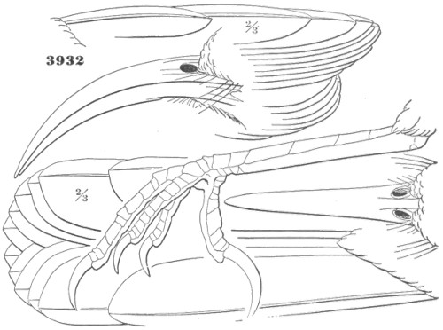 A. Inner toe equal to the middle in length; inner edge of middle claw pectinated. First quill longer than the third; all the quills with their inner webs entire, or without emargination. Tail emarginated. Feathers of the posterior face of the tarsus recurved, or pointed upwards.