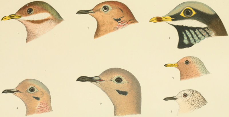 108 Zenaidura graysoni, Lawr. Ann. N. Y. Lyc. February, 1871, 17. A very distinct species, remarkable for its large, very long, and much depressed bill, and deep ferruginous, instead of pinkish-vinaceous, lower parts. The specimens are unfortunately all young birds, though they are fully grown.