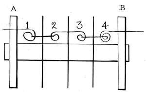 Page 55. Should read, "Cords being attached to binding posts Nos. 1 and 2 are in circuit with the Secondary Coil only. When at Nos. 2 and 3 they receive the induced current or extra current in the Primary."