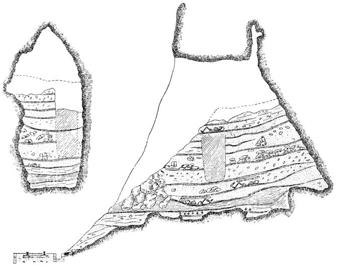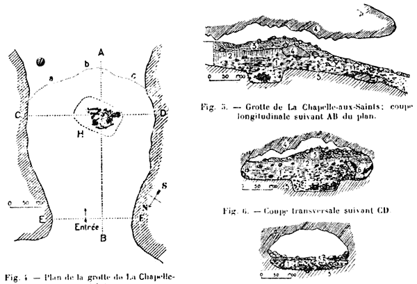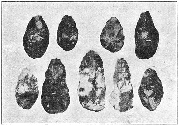 Over de geheele aarde wordt de gemiddelde temperatuur lager, worden de winters langer en strenger, de zomers korter, tot zich, van de poolstreken uit, de alle leven vernietigende ijskorst verder en verder naar het Zuiden, dieper en dieper van de hooge bergen tot in de minder koude dalen afdalende, uitbreidt. Zoo wordt het grootste gedeelte van Noord- en West-Europa met dikke, soms kilometerdikke ijsmassa’s bedekt. Slechts de zuidelijke streken, vooral Zuid- en West-Frankrijk en België blijven vrij (men vergelijke het kaartje van Fig. 1); wij zullen later zien, van hoeveel belang dit voor de ontwikkelingsgeschiedenis van den mensch is geweest.