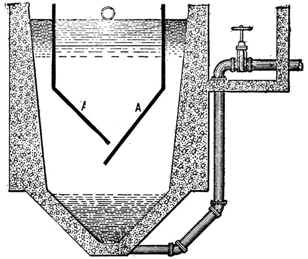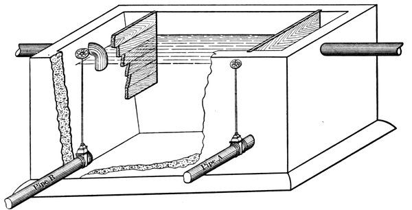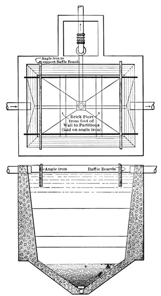 | 5. | View of settling tank, showing baffles, sludge pipe, drain pipe, and inlet and outlet pipes | 26 |