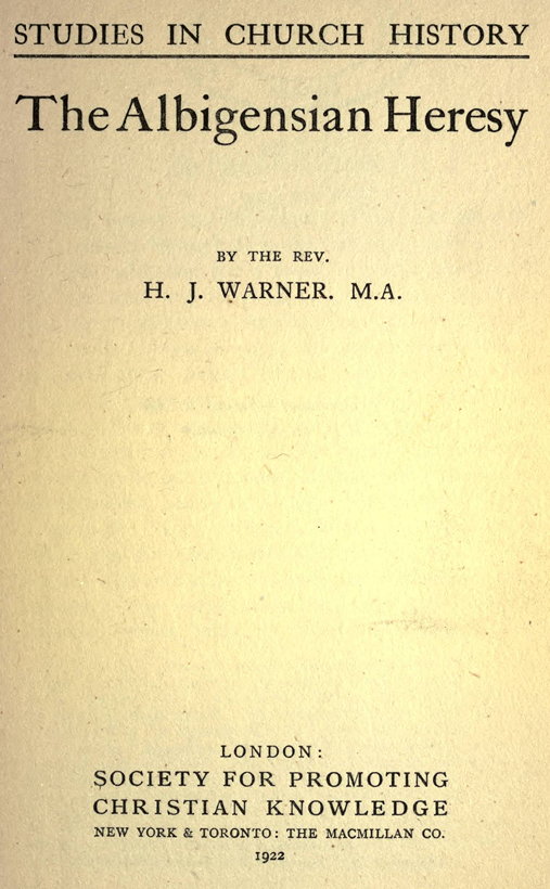 | Note: | Images of the original pages are available through Internet Archive. See https://archive.org/details/albigensianheres00warnuoft |