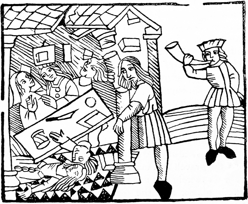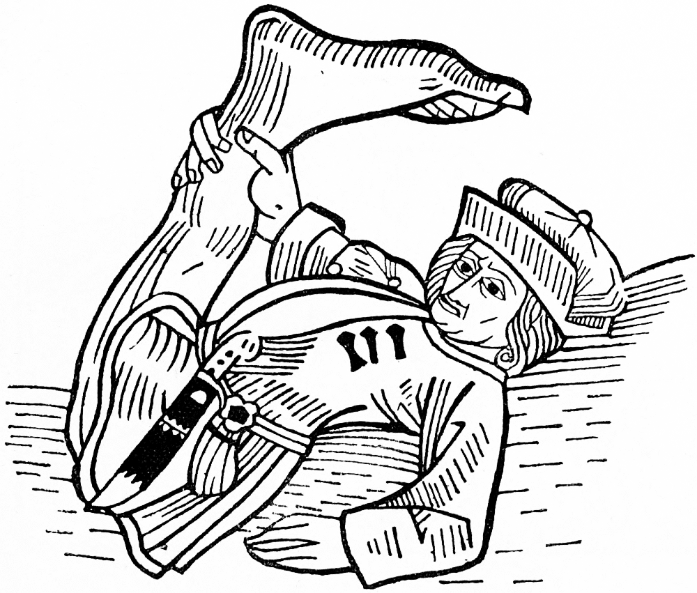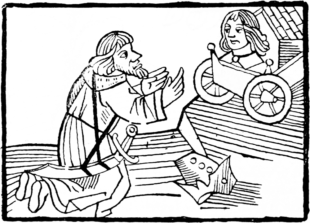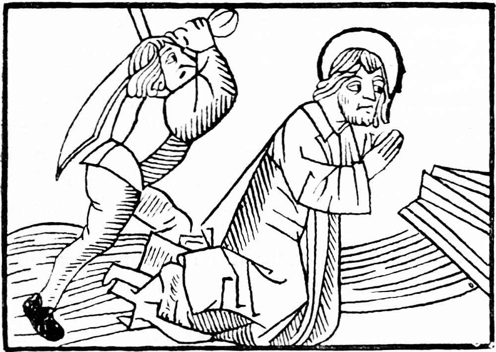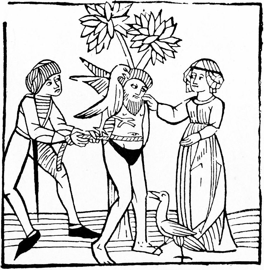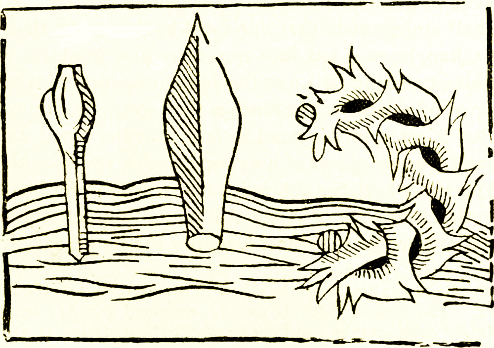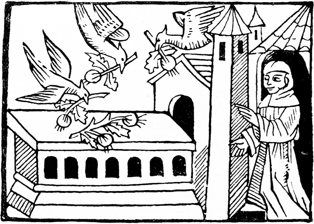 A part of the crowne of our Lord Jesu wherewith he was crowned & one of the nayles, and the speare head and many other reliques are in France at Paris in the chapell of the King, and the crowne lyeth in a vessell of cristall wel dight and richly, for ye French King bought these reliques sometime of the Jewes, to whome the Emperour had laid them to pledge for a great sume of golde. And although men say that this Crowne was of thornes—ye shall understand that it was of Jonkes30 of the sea, which be white and pricketh as sharp as thornes, for I have seene and beheld many times that at Paris, and that at Constantinople, for they were both of one, and made of Jonkis of the sea. But men have departed him in two partes, of the which one parte is at Paris, and the other part at Constantinople, and I haue a point thereof that seemeth a white thorne, and that was given me for a great friendeship—for there are many of them broken and fallen into the vessell, when they shew the Crowne to great men or lordes that come theither. And ye shall understande that our Lord in that night that he was taken, he was led into a garden, and there he was examined sharply, & there the Jewes crowned him with a crown of abbespine31 braunches that grew in the same garden & set it on his head so fast, that the blood came downe by many places of his visage, necke, and shoulders, and therefore hath the abbespine many vertues, for he that beareth a braunche of it about him, no thunder, nor any maner of tempest may hurt him, nor the house that it is [pg 13] in may no evill ghost come, nor in no place where it is. And in that same garden Sainct Peter denied our Lord thrise. And afterward was our Lord led before the Bishop and ministers of the lawe into another gardein of Anne32 and there was he examined, scorned & crowned efte33 with a swete thorn that men called barbareus34 that grew in the same gardein and that hath many vertues. And afterward he was led to a gardein of Caiphas, and there he was crowned again with eglentine,35 and after that he was led to a chamber of Pilate & there he was crowned, and the Jewes set him in a chaire and clad him in a mantell of purpure36 and then made they a crowne of Jonkes of the sea and there they kneled to him & scorned him saying Ave rex Judeorum. That is to say, haile King of Jewes. And of this crowne, halfe is in Paris and the other halfe at Constantinople, the which our Saviour Jesu Christ hadde on his head, when he was nayled on the crosse, and therefore shall men honour and worship it, and holde it more worthy then any of the other. And the speare shaft hath the Emperour of Almaine, but the head which was put in his side is at Paris they say, in the holy chappell, and oft tymes sayth the Emperour of Constantinople, that he hath the speare head & I have often seen it, but it is greater than that at Paris. Also at Constantinople lyeth Sainct Anne our ladie's mother, whom Saint Elene caused to be brought from Hierusalem, and there lieth also the body of Saint John Chrisostome that was bishop of Constantinople. There lyeth also sainct Luke the Evangelist, for his bones were brought from Bethany where he was buried: and many other relyques are there, and there is of the vessell of [pg 14] stone as it were marble, which men call Idryus, that evermore droppeth water & fylleth himselfe every yeare once. And ye shall wete that Constantinople is a fayre citie and well walled & it is three cornered, and there is an arme of the sea that men call Hellespon, and some men call it the bunch37 of Constantinople and some call it the brace38 of sainct George, and this water encloseth two partes of the citie, and upward to the sea upon that water was wont to be the great citie of Troy in a fayre plaine, but that citie was destroyed by the Grekes.