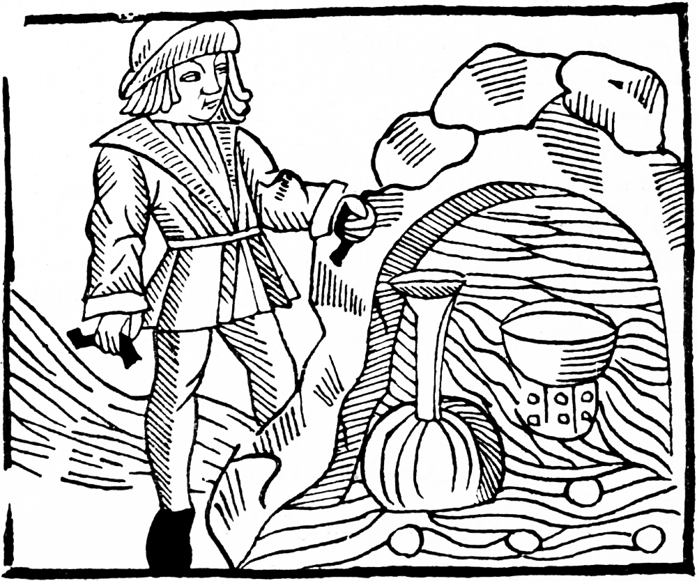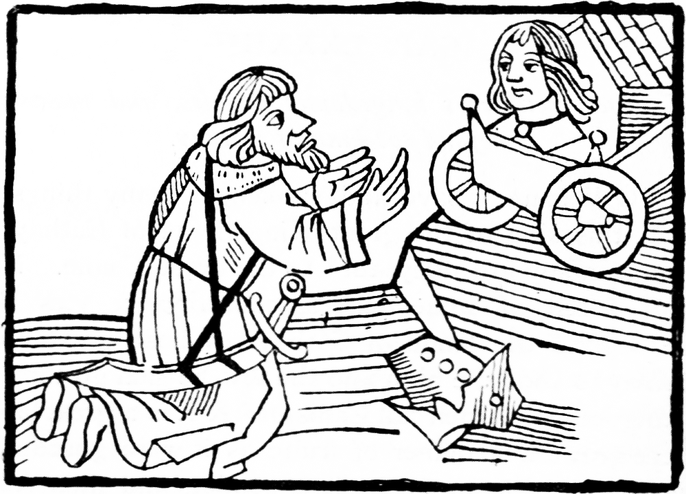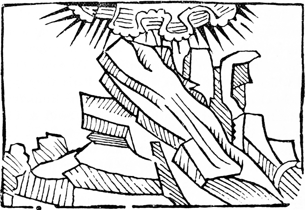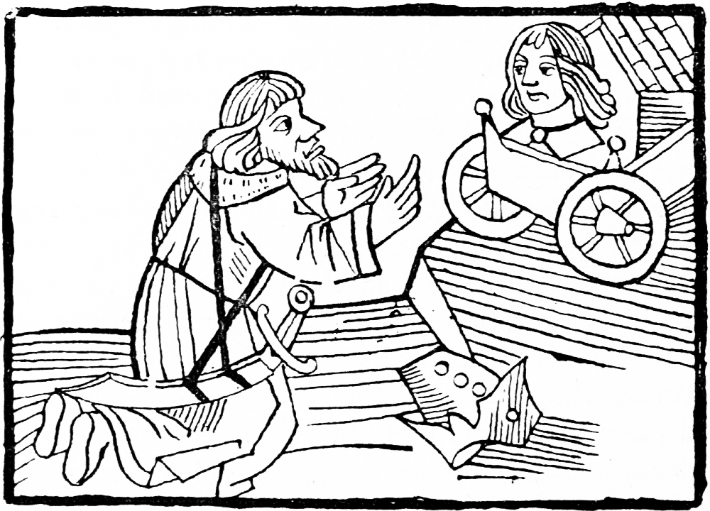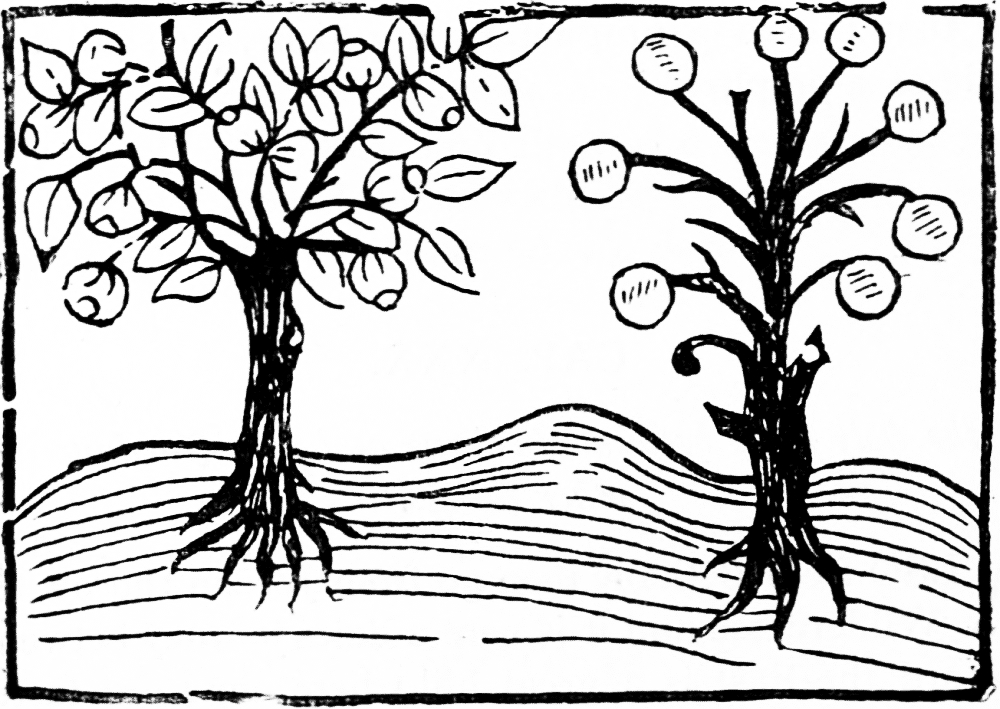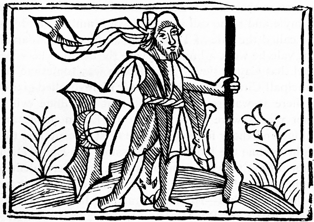 For the piece that went ryght up from the earth unto the head was of Cipres, and the piece that went overthwart, to the which his handes were nayled, was of Palme, and the stock that stood within the earth in the which they had made a morteys, was of Cedre, and the table aboue his head was a foote and a half long, on which ye tytle was written, yt was of Olyve. Ye Jewes [pg 10] made this crosse of these foure maner of trees for they thought yt our Lord shold have hanged as long as ye crosse might last, therefore they made the foote of Cedre, for Ceder may not in the erth ne25 in water rot; they thought that the body of Christ shold have stonken, they made the piece yt went from the yearth upwarde of Cipres so that the smell of his body shold greve no man that came by, and that overthwart was made of Palme in signification of Victory. And the table of the tytle was made of Olive, for it betokeneth peace, as the story of Noe witnesseth, when ye dove brought ye braunch of Olive that betokened peace made between God and man. And you also shal understande, that the Christen men that dwell over the sea, say that the pece of the Crosse that we call Cipres was of the tree that Adam eate the appell of, and so finde they written, and they say also that their scripture saith, that when Adam was sicke he sayd to his son Seth that he shold go to Paradise and pray that the Aungel that kepeth Paradise, yt he wold send him oyle of the tree of mercy for to anoynte him that he might have health, & Seth went, but the Aungel would not let him com in at the gate, but said unto him that he might not have ye oyle of mercy, but he took him three carnels26 of the same tree that his father eate the appell of, and bad him as sone as his father was dead, that he should put these carnels under his tongue and bury him, and he did so, and of these three carnels sprang a tree, as the Angel sayd and when the tree bare fruite, then shold Adam be made whole. And when Seth came againe and founde his father dead, he did with the carnels as the Aungell commaunded him, of the which came three trees, whereof a crosse was [pg 11] made that bare good fruite, that is to say, our saviour Jesu Christ, through whom Adam and all that came of him should be saved and delivered from everlasting death, but27 if it be their owne defaute.28 This holy crosse had the Jewes hid under the earth in ye rock of the mount of Calvery, & it laye there two hundreth yeares and more, as they say, unto the tyme that Saint Elene found it, the which Saint Elene was daughter of Coel King of Englande, that then was called Britaine, and after maried to Constantius, fyrst Consul and after Emperour of Rome, who had by hir issue Constantine the great, born in England and afterward Emperour of Rome, which Constantine turned the name of Bezansium into Constantinople, he reedified that citie, and made it monarcall seate of all Europa and Asia Minor. Also ye shall understande that the crosse of our Lord was in length viii cubites and that the piece that went overthwart was three cubites29 and a halfe.