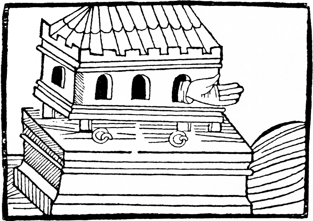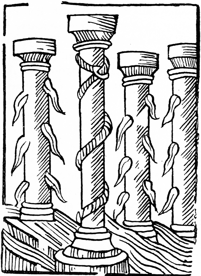 Footnote 15: [Other editions say four, which is the number represented in the engraving.] So this edition would appear to be correct, as one pillar, plus three other pillars = four pillars.