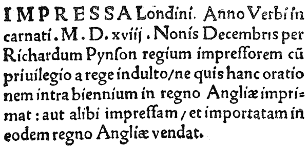 18.—Pynson’s Roman letter. From the Oratio in Pace Nuperrimâ, 1518 . . . 92