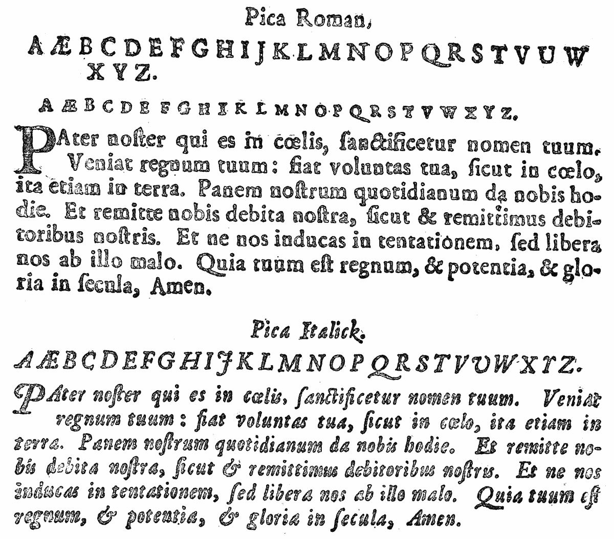 In detailing the rise and progress of the various English Letter Foundries, it has been my endeavour to treat the subject, as far as possible, bibliographically—that is, to regard as type-specimens not merely the stated advertisements of the founder, but also the works for which his types were created and in which they were used. The Catena on Job, Walton’s Polyglot, Boyle’s Irish Testament, Bowyer’s Selden, thus rank as type specimens quite as interesting as, and far more valuable than, the ordinary letter founders’ catalogues. Proceeding on this principle, moreover, this History will be found to embody a pretty complete bibliography of works not only relating to, but illustrative of, English Letter Founding. At the same time, the particular bibliography of the subject has been kept distinct, by appending to each chapter a chronological list of the Specimen Books issued by the foundry to which it relates.
