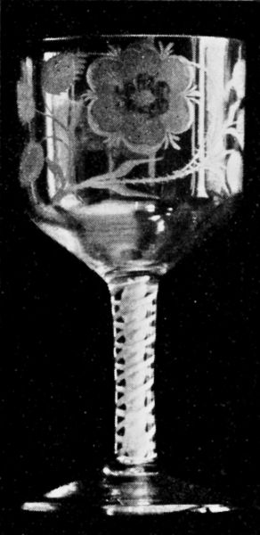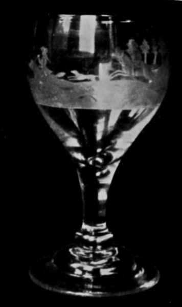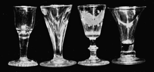 Then there is attraction in the historical and social traditions which have gathered around the ware; romance lingers on in the Jacobite glasses, the Williamite glasses, the Georgian glasses, the rummers and groggers engraved and drunk from to celebrate the victories of Nelson or famous elections; and humour resides in many of the relics of the punch-bowl and six-bottle days. To honour particular occasions one’s fine old glasses may come out of the cabinet and be used at table again; I know a collector of “captain glasses” who brings them out for champagne. For decoration or in use old glass has a refined, artistic, aristocratic air.